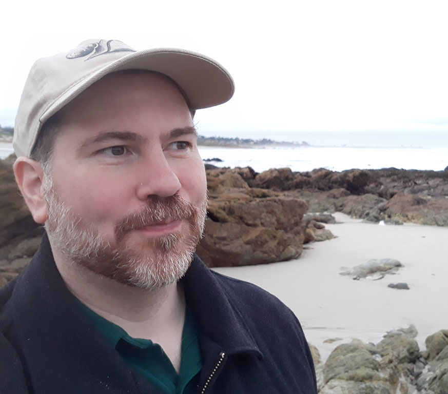 Owen at Asilomar in 2023Photo of bearded man with central California coastline in the background